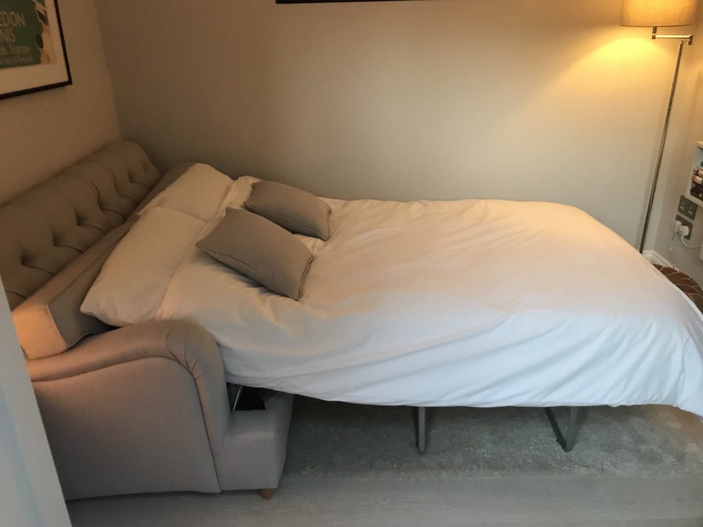 We have packed a lot into a small space, with a double bedroom and ensuite shower room, plus a living room with a sofa bed.